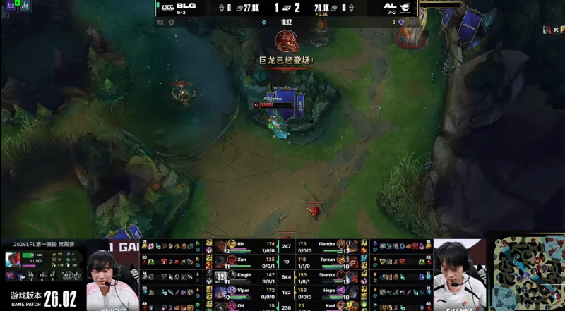 26分钟,Tarzan强开Knight失败,BLG先后击杀Hope与Shanks